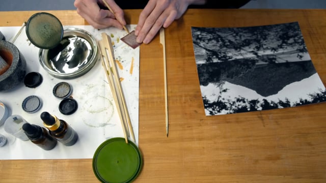 Bridget is the 2020/21 Frances Hodgkins Fellow and opened her fellowship exhibition "Pōkai Whenua, Pōkai Moana" in August 2021. A part of this exhibition, “Summering on Lakes Te Anau and Manapouri” consists of a series containing over 40, 8x10” whenua-coloured gelatin silver photographs. Made with a large-format camera, each photograph was developed in her darkroom and then hand-coloured with earth pigments gathered and gifted from where the images were captured.